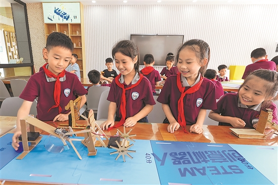 近年来,江苏省常州市武进区各学校在儿童科学教育实践中进行积极探索,将儿童科学教育融入到日常教学中。在武进区星河实验小学,学校引入全景式科学课程群,让孩子们感受科学的魅力,健康快乐成长。