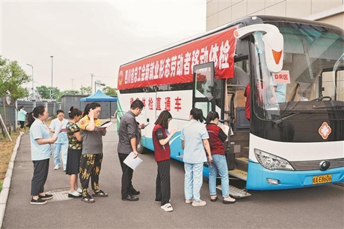 “身体和心理体检一样不少,医生在现场给出专业指导,还能领大礼包!”6月13日,广东省总工会开展新就业形态劳动者移动体检专项工作,前来参加体检的顺丰快递员吴家贵说。当天,体检车带来的移动体检新方式和一系列体检智能科技,让近200名新就业形态劳动者感受到在“家门口”体检的便利和新鲜。