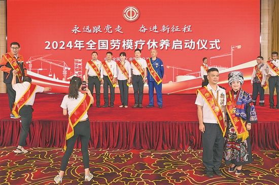 6月13日,2024年全国劳模疗休养活动在北京启动,首批200多名各行各业、不同地区、不同时期的全国劳模、全国五一劳动奖章获得者、大国工匠代表相聚北京,在为期一周的疗休养活动中学习交流、休养身心。活动期间,全国总工会组织劳模全方位开展理论学习和实践活动,还为劳模提供了内容丰富的疗休养项目,让他们在交流学习中休养身心。
