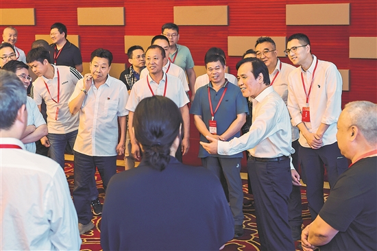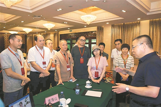 6月16日,首都医科大学附属北京康复医院院长盖海山(右一)在全总国际交流中心开设主题为“提高健康意识 智慧管理健康”的讲座。讲座间隙,盖海山为劳模工匠们答疑解惑。