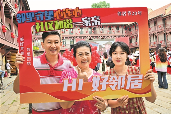6月17日,市民在青岛邻居节20周年系列活动启动仪式上合影。