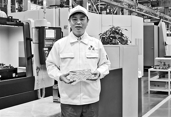 随着铣刀飞速旋转,红旗轿车、万里长城、雄鹰、松柏等元素及“劳模精神、劳动精神、工匠精神”的字样逐渐呈现,数控铣床上原本平平无奇的金属方砖也就成了艺术品,“作画”的人是中国一汽首席技能大师、研发总院试制部高级技师杨永修。据了解,杨永修使用的最小刀具只有5根头发丝这么细。工作十几年来,杨永修“指挥”数控铣床驾驭形形色色的刀具,为红旗汽车试制各类核心精密零部件,成为名动业界的“刀锋舞者”。