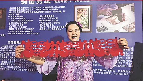铜凿剪纸是佛山独有的剪纸艺术品种,迄今已有800多年历史。在“2024海峡职工论坛”展区,“南粤工匠”饶宝莲现场展示铜凿剪纸等技艺,并向观众赠送“福”字剪纸作品。(本报记者 白至洁 于芊芊)