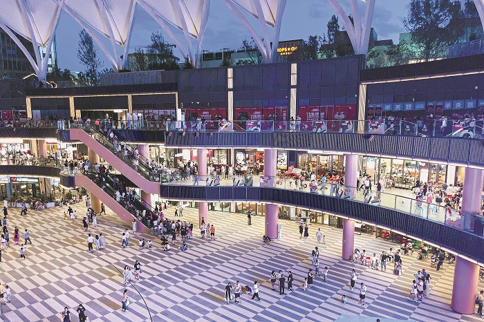6月22日晚,在北京市昌平区的一处大型购物中心内,市民正在逛商场。