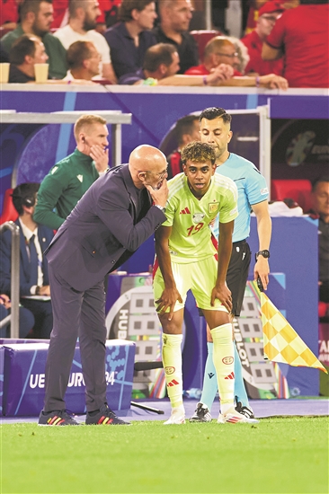 在当天凌晨进行的另一场小组赛中,西班牙队1比0战胜阿尔巴尼亚队,小组赛三战全胜,成为榜首球队里唯一零失球的队伍。比赛第71分钟,年仅16岁的西班牙天才少年亚马尔替补上场,在球场上尽显青春风采。