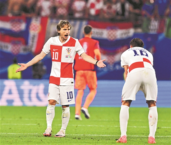 北京时间6月25日凌晨,2024欧洲杯小组赛B组迎来第三轮较量,克罗地亚队在伤停补时最后阶段被意大利队1比1绝平。克罗地亚名将莫德里奇本场为球队打入一球,凭借这粒进球,莫德里奇成为欧洲杯历史最年长的进球者(38岁289天)。3轮过后克罗地亚队仅积2分,排名小组第三,出线仅剩理论上的可能性。“魔笛”的第5届欧洲杯极有可能要画上句点。