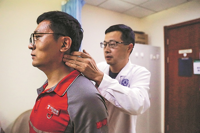 6月26日,北京康复医院,快递员陈永真因慢性疼痛在劳模健康管理中心的慢病门诊进行健康评估。