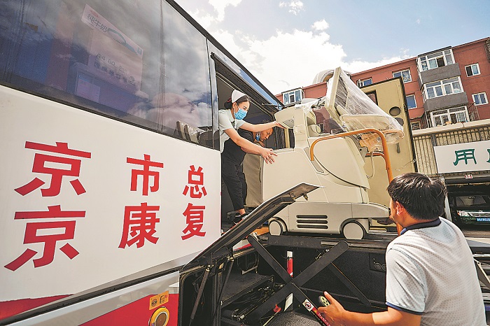 6月24日5时,北京街头,空气中弥漫着淡淡的清凉,街道空旷而宁静,偶尔有早起的行人匆匆走过,或是几声鸟鸣划破天际。此时,位于石景山区的首都医科大学附属北京康复医院的医务人员已经忙碌了起来,简单吃完早饭,带上当天的物资,坐上大巴车,他们要前往几十公里外的通州区宋庄成人教育学校,为当地的新就业形态劳动者们送上一份特别的健康关怀。