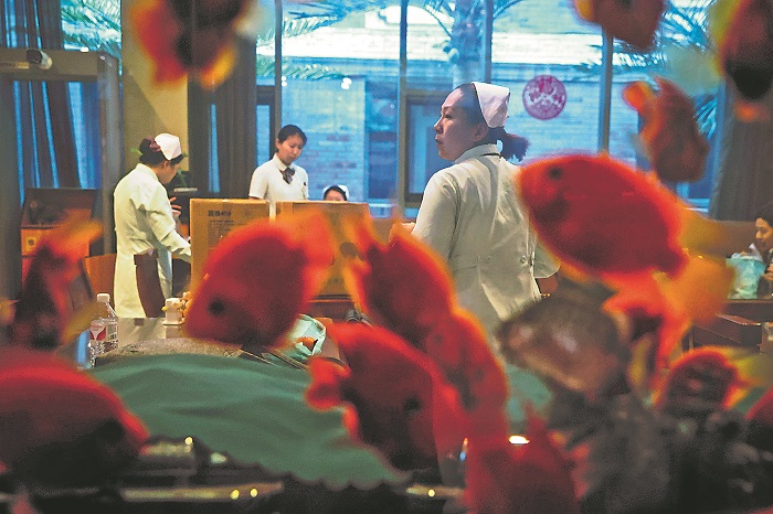 6月24日清晨,北京康复医院,当日参加移动体检的医务人员在一楼大厅吃早餐。