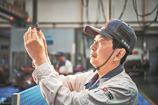 将于年内下线的CR450动车组,运行时速将提升到400公里,新一代高速动车组的“心脏”——牵引电机,采用的就是邱文军和同事们生产的永磁电机部件。