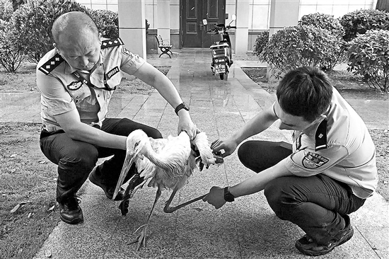 警民联手救护东方白鹳