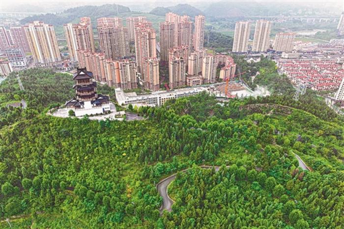 6月30日,贵州省黔西市锦绣街道,雨后的凤凰山公园。近年来,锦绣街道对凤凰山采矿沉陷区进行生态修复,打造成劳模公园,让人们游览的同时感受劳模精神。本报通讯员 周训超 摄