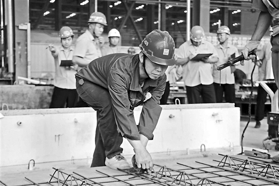 为推进产业工人队伍建设,中建绿色建筑产业园(济南)有限公司启动2024年企业技能人才自主评价取证考试,采用“理论+实操”评定方式,共有21名产业工人参加,评价工种涵盖混凝土工、钢筋工、水泥混凝土制品工三大工种,五个方向,考试通过后颁发相应等级的技能等级证书。 图为工人参加钢筋工培训取证。本报通讯员 李慧慧 摄
