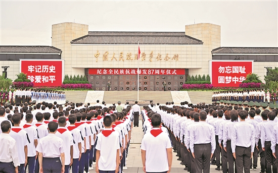 7月7日,各界代表参加纪念全民族抗战爆发87周年仪式。 当日,纪念全民族抗战爆发87周年仪式在北京中国人民抗日战争纪念馆举行。