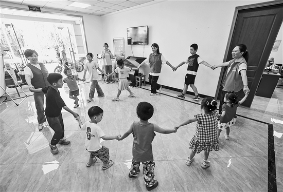 为丰富乡村青少年的暑期生活,从7月初开始,浙江省湖州市吴兴区东林镇多个村开展了暑期“春泥计划”,由大学生志愿者、镇村青年志愿者组成了“春泥计划”暑期班的老师,带领孩子们开展包括文化课、绘画书法、非遗文化、趣味游戏等多种内容的课程活动。图为7月5日,志愿者们在东林镇泉庆村带着孩子们做游戏。