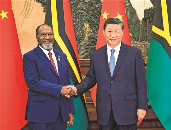 双方发表《中华人民共和国和瓦努阿图共和国联合声明》,一致同意提质升级两国全面战略伙伴关系,构建新时代中瓦命运共同体。