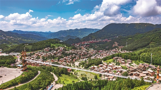 这是7月18日拍摄的贵州省六盘水市水城区海坪彝族文化小镇景色。