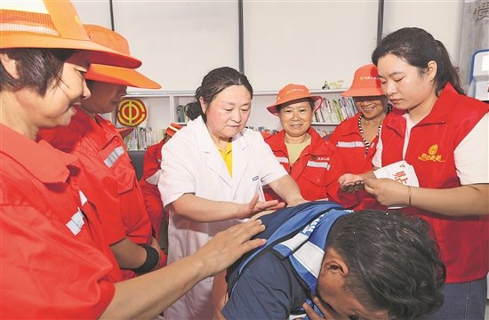 7月22日,安徽省淮北市相山区总工会组织医护人员,在工会驿站内为户外劳动者讲解防暑降温知识,把脉问诊,贴敷“三伏贴”,将爱心和健康送给户外劳动者。
