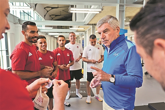 当地时间7月22日,国际奥委会主席巴赫到访巴黎奥运村。