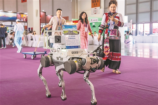 正在昆明举行的第八届中国—南亚博览会上,数字经济、人工智能、绿色能源、低空经济等领域“科技范”十足的展品吸引众多观众参观、体验。新华社记者 胡超 摄