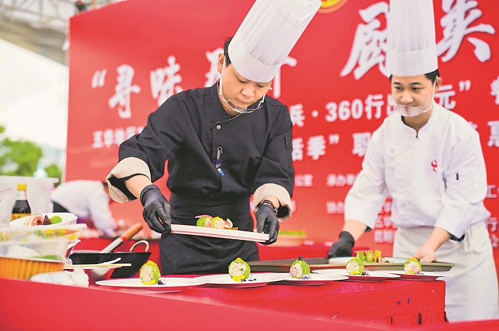 日前,云南省昆明市五华区中式烹调师、调饮师职业技能竞赛上,20家餐饮行业企业的60余名参赛职工展开激烈角逐。选手们将烹调技艺、营养知识、滇菜文化等融入实操,通过展现刀工、炒工、炸工、美工等专业技能,制作出一道道色香味俱全的滇菜美食。本报记者 赵黎浩 摄