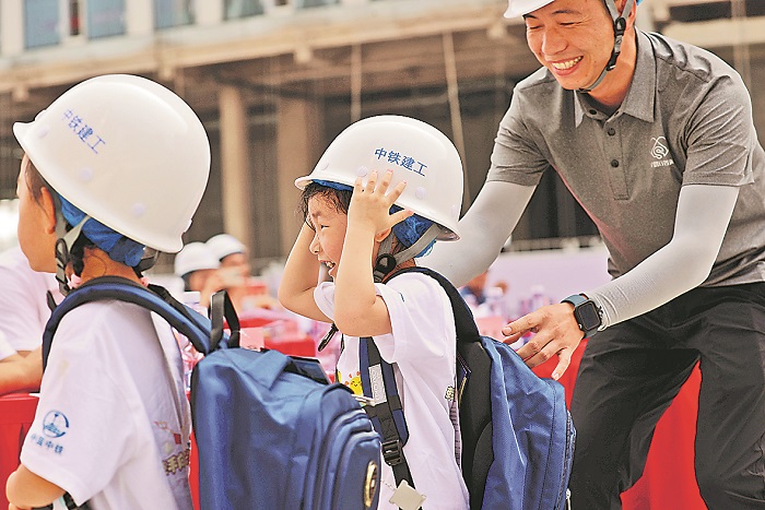 据了解,为帮助建筑工地外来务工人员解决暑期孩子缺人照看的困难,项目承建方中铁建工集团邀请了30个家庭的农民工子女来到工地,和他们的父母一起参加小候鸟夏令营活动,引导务工人员关爱留守儿童、履行监护职责,促进工友子女们健康成长。