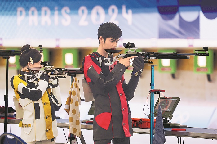 7月27日,在巴黎奥运会射击10米气步枪混合团体决赛中,中国队“00”后组合黄雨婷/盛李豪摘得金牌。这是巴黎奥运会诞生的首枚金牌。