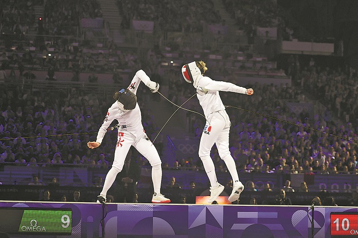 北京时间7月28日,在巴黎奥运会击剑女子个人重剑金牌赛中,中国香港选手江旻憓(左)夺得冠军。本报特派记者 杨登峰 摄