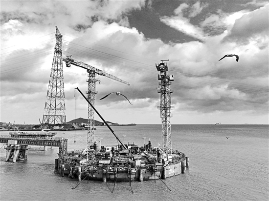 7月28日上午,随着今年第3号台风“格美”远离,甬舟铁路工程之一的西堠门公铁两用大桥项目各工点有序复工,一线参建者各司其职,忙着隐患排查、安全检修、吊装运输、浇筑等各项工作。姚峰 摄/中新社