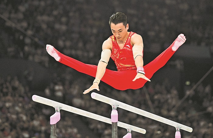 7月29日,邹敬园在双杠比赛中。新华社记者 程敏 摄