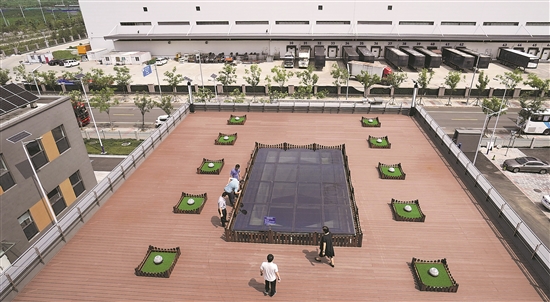 楼顶“绿电工厂”安装的可透光碲化镉发电玻璃(7月31日摄)。