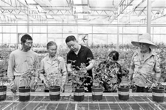 目前,当地培育月季70余种,培养种植管理技术型花匠人才32名,去年以来派出“郭塘花匠”售后管护1500人次,实现“种好一朵花、带富一村人”。图为当地村民在花匠的指导下,学习月季培育技术。本报通讯员 李君平 摄