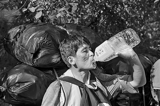 目前,八达岭长城景区正值暑期旅游高峰,保洁员的工作量也比平时增加了不少。