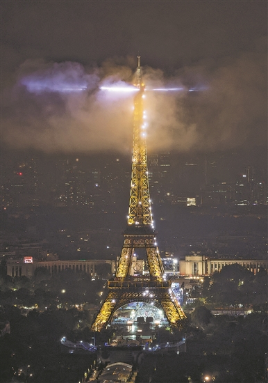 北京时间7月27日5时35分,巴黎奥运会开幕式在雨中落下帷幕,夜色笼罩埃菲尔铁塔。这是奥运历史上首次在户外举办开幕式。