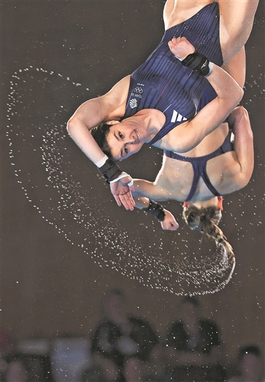 7月31日,获得铜牌的英国组合在跳水女子双人10米台决赛中。