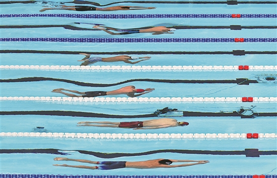 7月29日,选手们在男子100米蛙泳决赛中。