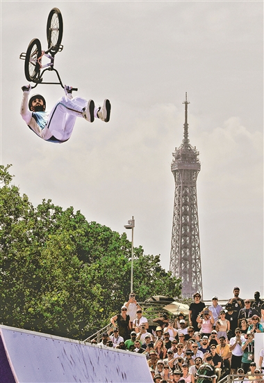 7月31日,在协和广场举行的自由式小轮车男子公园赛决赛中,获得铜牌的法国选手安东尼·吉恩在比赛中。