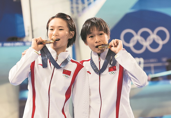 中国跳水“梦之队”在出战的前4场比赛中保持全胜,为中国队拿下4枚金牌。中国游泳队在面临不利因素的情况下,由潘展乐实现突破,夺得男子100米自由泳冠军,他46.40秒的夺冠成绩创造了新的世界纪录。