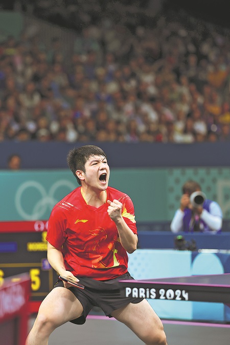 樊振东庆祝胜利。本报特派记者 杨登峰 摄