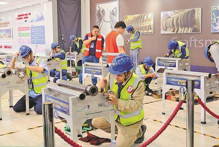 近日,福建泉州市智能制造行业机泵维修岗位职工技能竞赛开赛。来自泉州市辖区11支队伍33名选手同台竞技,全方位展现技能水平。本报通讯员 肖万元 摄