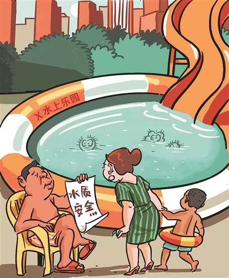 每到夏季,类似案例就会多起来。按理说,遇到这种情形,有关部门在接诉后应及时介入调查,一来是避免发生公共卫生事件,二来是释放监管信号,倒逼有关经营方注意相关义务。当然,也不是职能部门不作为,而是水上乐园的性质与游泳池不同,在水质方面缺乏硬性标准,基本都靠商家自觉,因而陷入“不在监管范围”的怪圈。公共卫生不能留有死角,针对新情况新问题,有关方面不可墨守成规,或出台文件要求参照泳池标准监管,或完善多部门联席监管机制,相信办法总比困难多。夏季玩水是很多人的共同消费需求,市场已经狂奔、管理还在观望的被动局面必须尽快扭转。赵春青/图 嘉湖/文