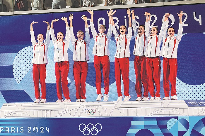 本报巴黎8月8日电(特派记者毕振山)当地时间8月7日晚,巴黎奥运会花样游泳集体项目的最后一项集体技巧自选在巴黎奥林匹克水上运动中心举行,由冯雨、常昊、王赐月、王柳懿、王芊懿、向玢璇、肖雁宁、张雅怡组成的中国队获得283.6934分。加上此前集体技术自选和集体自由自选得分,中国队总分达到996.1389分,以领先第二名80多分的成绩夺得冠军。
