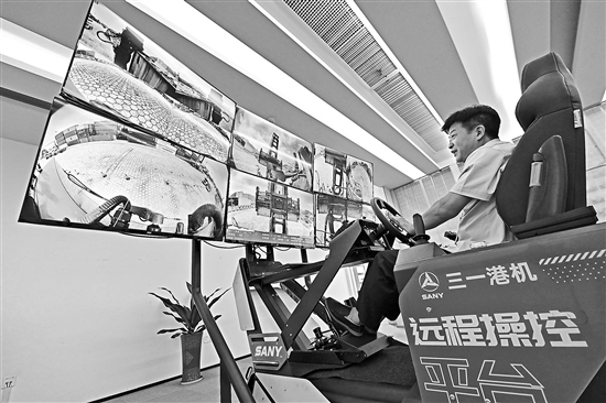 8月6日,厦门集装箱码头集团有限公司海天分公司装卸操作人员,在厦门国际航运科创中心远程操控堆高机作业。近年来,厦门港逐步实现集装箱堆场自动化作业和岸桥远程操控作业等智慧转型,港区生产管理水平和作业效率显著提升。新华社记者 林善传 摄