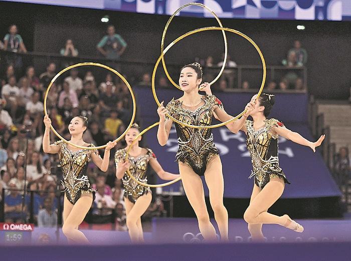 当天的艺术体操赛场也传来捷报。由丁欣怡、郭崎琪、郝婷、黄张嘉洋和王澜静组成的中国队以69.800的总分夺冠,夺得中国艺术体操队史上首枚奥运会金牌。