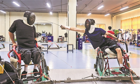 近日,中国轮椅击剑集训队(江苏组)在江苏南京的江苏省残疾人文化体育指导中心集训,备战即将举行的巴黎残奥会。