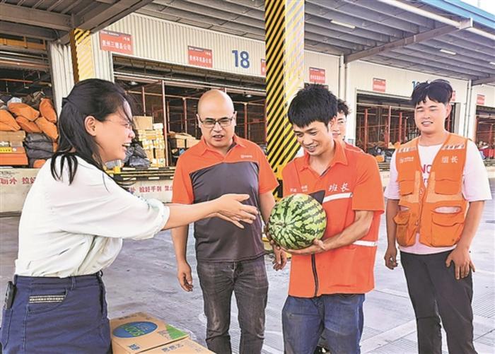 管委会工作人员将凉茶、西瓜等物资送到一线快递员手中,叮嘱大家一定要提高安全意识,劳逸结合,防止高温中暑,保证安全。同时,要求企业负责人落实好高温季节劳动保护政策,全力做好安全生产工作。本报通讯员 邓永基 摄