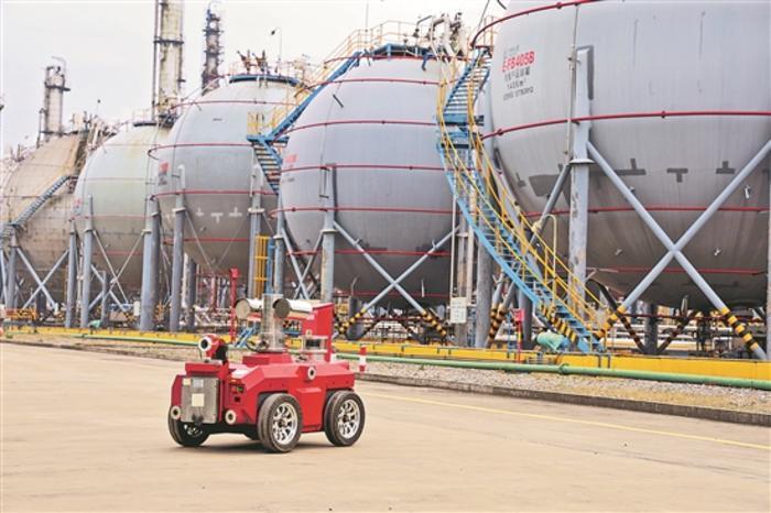 8月14日,扬子石化生产现场的机器人在巡检。该公司通过5G+智能巡检系统、网络数据实时上传等功能实现装置现场的智能化巡检,通过DCS仪表数据的自动对比快速识别现场装置的生产异常,提升各类报警信息获取的准确性和及时性,有效降低各类风险事故的发生,提升本质安全。