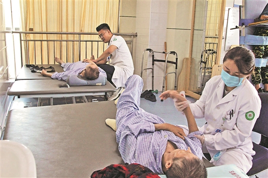 8月15日,山东省梁山县中医院康复医学科在为慢性病患者按摩。针对慢性病患者增多且趋向年轻化,中医治疗成为许多患者的首选方案。本报通讯员 杨玉建 吕玉会 摄