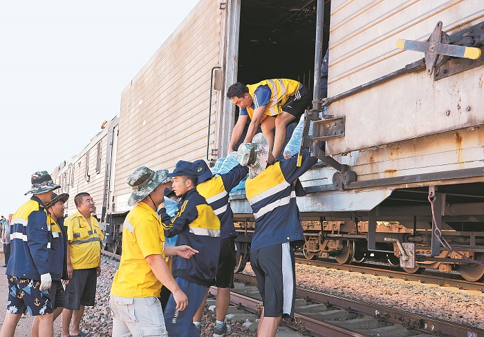 图为职工们正在图克木庙站进行卸水作业。朱国顺 雷利东 摄