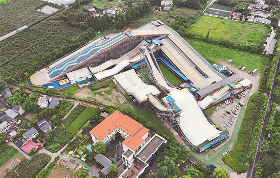 8月的成都夏日炎炎,位于成都市新都区的尖锋旱雪四季滑雪场却人气爆棚。每年非雪季,国家和省级冰雪运动员、青少年冰雪运动员、滑雪爱好者齐聚于此,进行反季节训练,常驻专业运动员有两三百人。